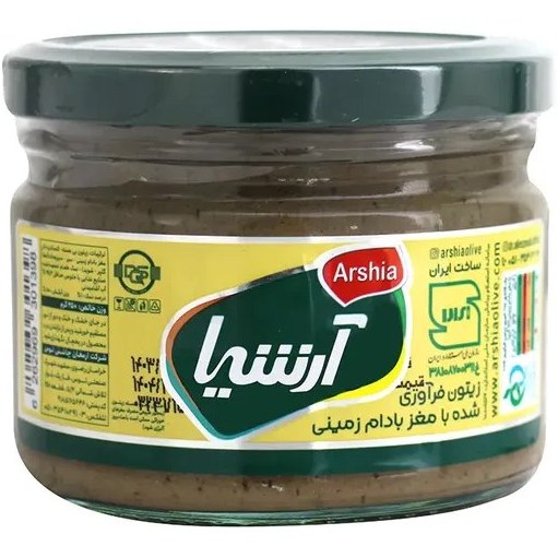 درباره زیتون پرورده با مغز بادام زمینی شیشه آرشیا 250گرم 9 عددی
